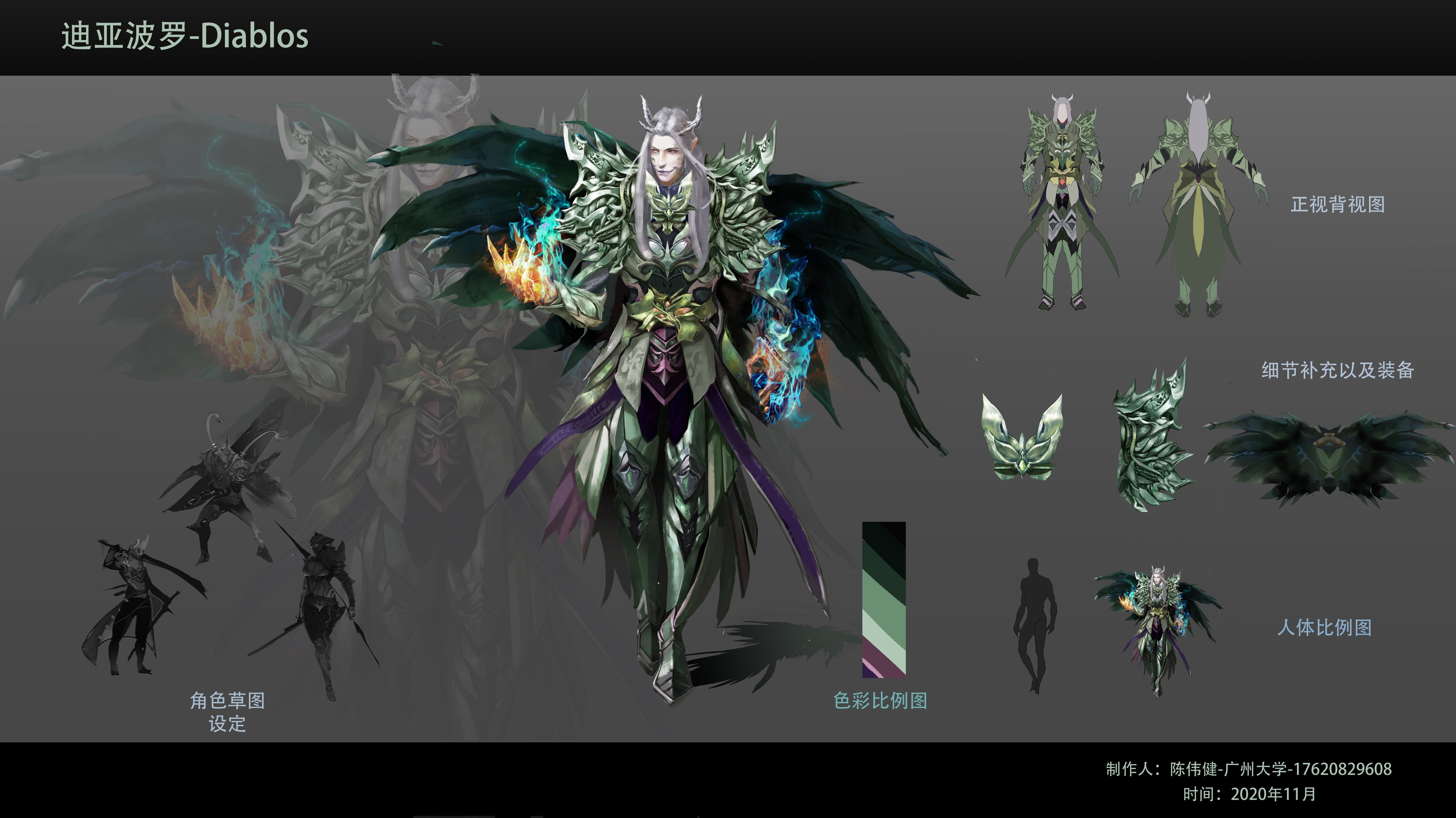 主题是以一个古代皇位皇子同时也是一个学术高深的机械师为题去进行的一个角色设计。主要以重金属厚涂手法去绘制。整体个人想法是用现对旧时代的装备设计搭配更为现代的机械设计去进行,其中选择了山海经的白虎进行了设计元素进行扩展,搭配中国皇家的玉佩以及皇室龙气为设计想法进行设计。整体设计较为厚重,其中脸进行了偏向阴柔的显摆。身上的配饰以及服装,也应用了相对的虎纹,彰显身份。背景故事是以皇家争权,皇子阴暗化的机械设科技以求上位,手掌皇权