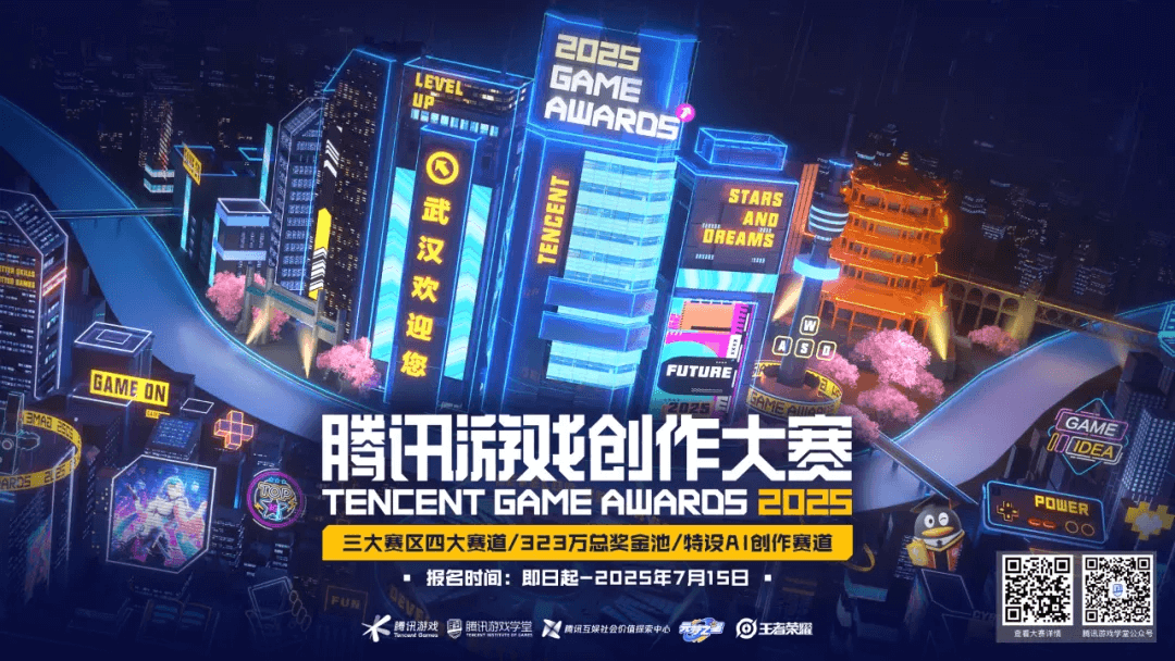 2025武汉国际设计大赛·腾讯游戏创作大赛是由腾讯游戏学堂和武汉市洪山区人民政府主办的全球性游戏创作赛事。本次活动由中共武汉市委宣传部、武汉市人才工作局、武汉市自然资源和城乡建设局、武汉市文化和旅游局、武汉 市经济和信息化局联合指导,由腾讯游戏学堂、腾讯互娱社会价值探索中心和武汉广播电视台(集团)联合承办,由腾讯科技(武汉)有限公司、武汉数字创意与游戏产业协会和各在汉高校协助办理。