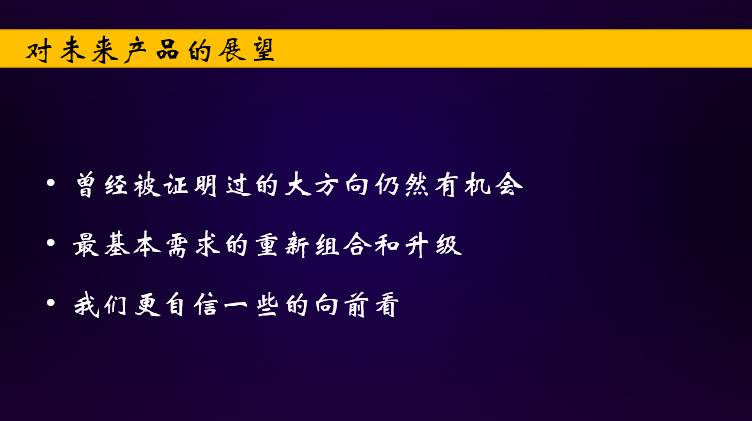 这里有一个大家经常提到的问题,对手游未来方向的展望、因为手游从兴起到稳定现在也有一段时间了,到底对于未来的产品方向和趋势大家怎么看?我也简单的说一下我的几个观点吧。