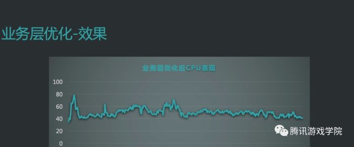 其他模块降级的策略会有AI思考间隔,移动请求降频,技能扫描的范围,有些AOE技能打得很远,在系统非常繁忙的时候就不让它打到那么远,只搜索附近的玩家。做了过载保护以后,有这么几个成果,系统已经不是一直维持在过载状态,像聊天、移动就可以变得流畅了,但是技能的延迟还是非常高。CPU曲线会出现狗牙状,非常不稳定,还在不断的往顶上碰,上去以后就会被砸下来,之后又会由玩家行为顶上去。