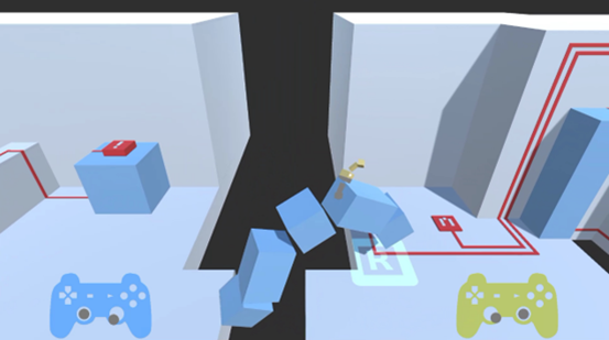 我们终于得以逐步确定整个游戏的设计根基,也就是让玩家以自己的节奏操作双腿带来的纯粹趣味,和紧密合作:一起克服个体的局限性,在互帮互助下完成共同目标的达成感。得出这些看似早该一目了然的结论时,团队已经经历了大量的试错。