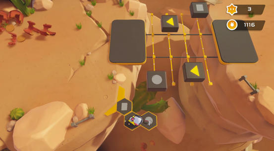以“脚数板”这个解谜要素为例,当检测到有机器人的脚接触到平台的时候,平台就会做出反应并且持续缩小。而在biped中,由于1:1的精密操作性是游戏感受的关键,玩家完全可以通过极细微的输入来将腿只移动分寸距离。于是当他们处于“脚数板”的边缘而无意中触动摇杆做出少量的移动时就有可能误触发平台。