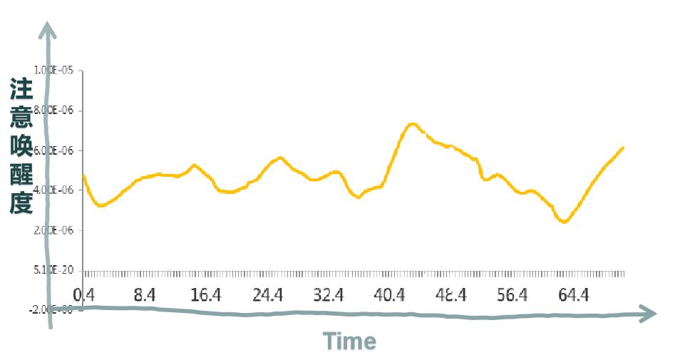 3) 它还可能是游戏要求的玩家投入度或注意力, 我们可以通过监测用户的脑电/皮电变化来评估玩家在游戏过程中的投入情况。比如下图中就是玩家在某次体验中的脑电变化,如果结合玩家游戏体验的视频录像,我们能够判断玩家在哪些场景中获得了最高峰的体验,是否符合我们的设计预期。