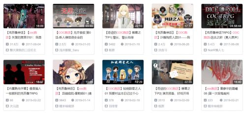 我们也可以看到B站上“克苏鲁文化”衍生的桌面角色扮演游戏“COC跑团”的视频流行起来。