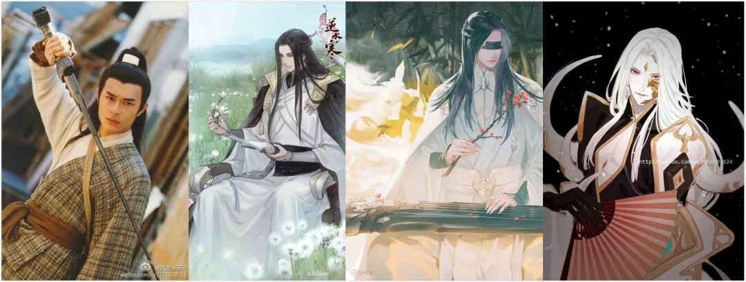 [ 从左至右分别为:古天乐版杨过、遇见逆水寒版无情、楚留香手游版原随云-作者小真、楚留香手游方思明 ]