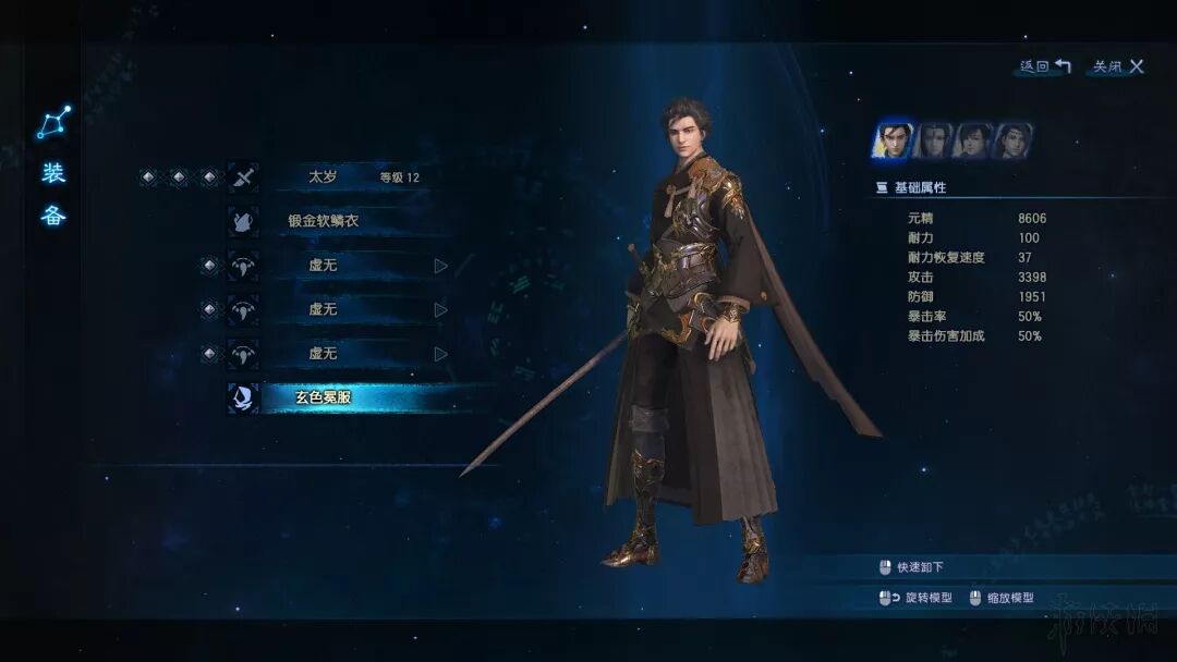 比如下面这件玄色冕服,是他哥哥玄戈出场的一袭白衣的同模变色版本。而这件衣服也需要完成北洛的身世支线“巨兽之影”——北洛与自己的过去和解、明白自己当年还是有母亲爱着和保护着之后——才能够获得设计图。所以说这件衣服更重要的是其象征意义(同时节省了服装单独建模的美术成本)。