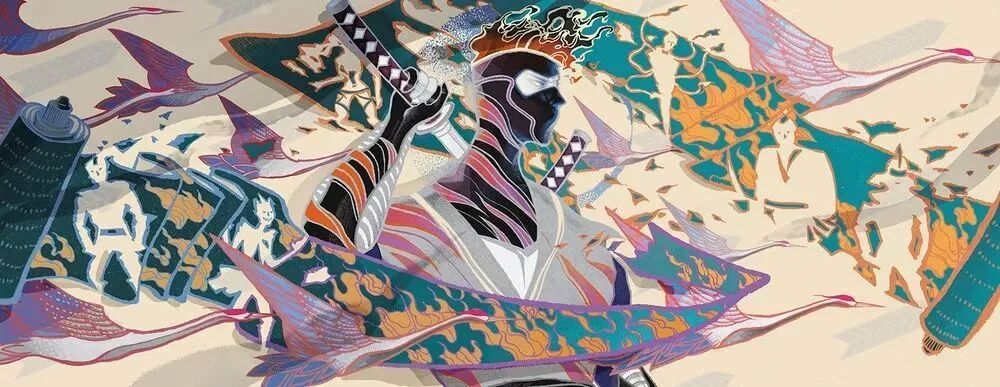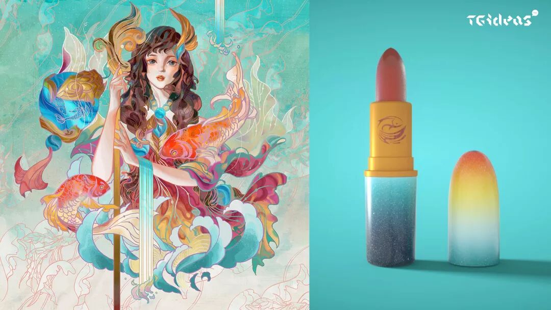 再说说插画,插画我们选择了在游戏原画设定基础上进行重绘。因为作为一个游戏产品的破圈层合作,我们更希望在原有王者荣耀设定的基础上靠拢爱美小仙女们理想口红的样子,所以插画师我们选择了六厘蛰羊 ,美国插画家协会Society of Illustrators会员,现居纽约的自由插画家。她的风格独特,其浓烈的色彩和线条可与管身渐变呼应,结合金箔印刷工艺营造视觉的“梳妆”质感。