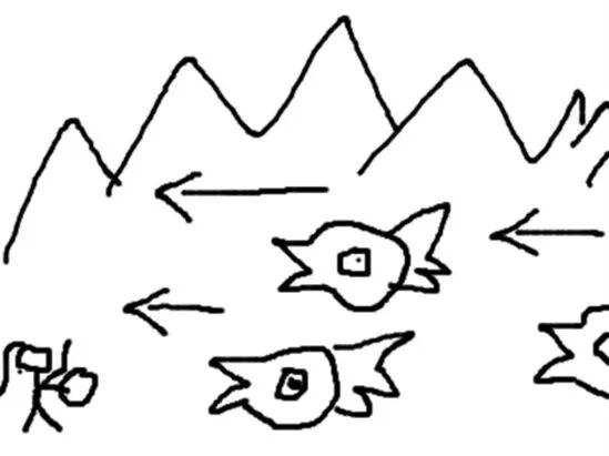 我们首先尝试的是第二种方案,萨满站在画面左边,怪物会从右边向左边移动攻击萨满,示意如图(来自程序小哥的灵魂之作)。