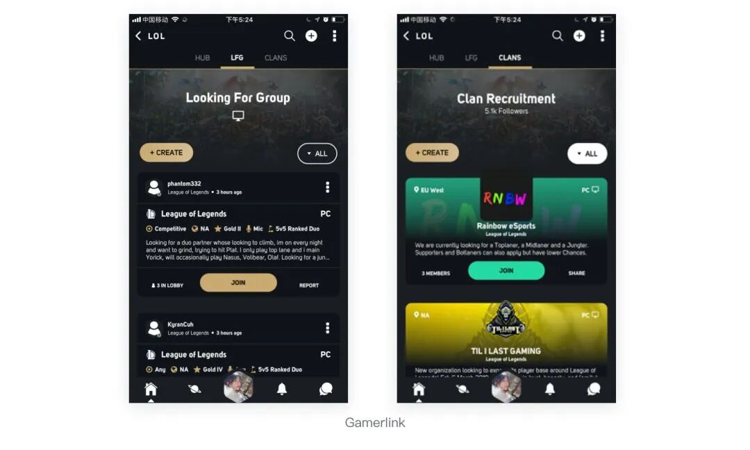 对于有目的性寻找游戏好友的玩家,应该为他们提供明确的场景和方式。Gamerlink是一个寻找游戏好友的app。他支持多种形式的找人、团体创建;可选内容条件丰富、搜索筛选维度多,能精准找到自己想找的队友和团队。需求吻和的玩家能直接形成一个小社群,快速达成目标,一起游戏。