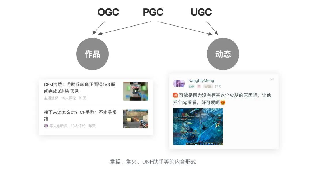 在我们的游戏社区中,以内容的形式将内容分为了两块:OGC、PGC为主的作品,以及PGC、UGC为主的动态。