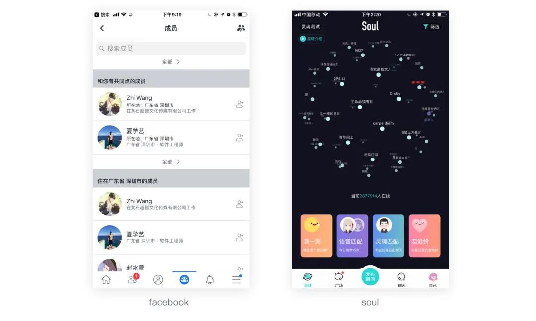 在自由社区环境中,如何促使玩家与玩家认识呢?可以尝试为玩家推荐有类似属性的其他玩家,比如facebook、soul都采用了这样的形式。我们可以尝试根据玩家的战力水平、上线时间、用户属性等等去进行推荐。
