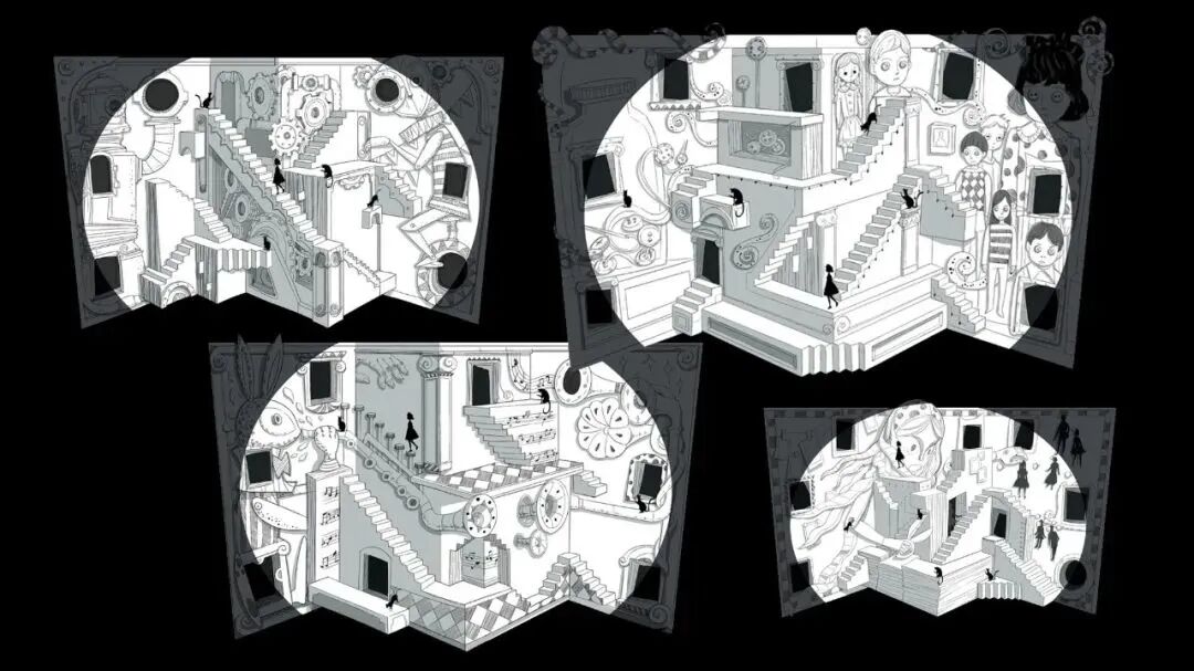 《彩虹坠入》中,玩家扮演的伊丽丝(Iris)在各个场景里跑来跑去,通过触发不同机关或摆放物件到相应位置来解谜。大多数情况下她站定在一个地方做游戏互动,静态解谜居多,游戏节奏变化不大,显得很慢。同时整个游戏是线性叙事,每个章节在游戏里的位置是固定的。一个线性叙事的静态解谜游戏,该如何设计它的音乐呢?