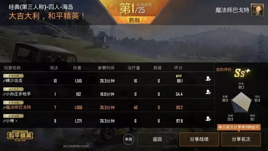 游戏反馈系统,明确告诉玩家现状如何,同时展示出玩家距离实现目标还有多远。它通过点数、级别、得分、进度条、装备背包等形式来反映。反馈系统是最基本也最简单的形式,就是让玩家认识到一个客观结果:“等……的时候,游戏就结束了。”对玩家而言,实时反馈是一种承诺:目标绝对是可以达到的,它给了人们继续玩下去的动力。反馈时机和内容很多,其中结算就是一次重要的反馈场景,如下图。其基本信息,个人战绩、历史战绩、等级、排名等都是对玩家的总结和反馈。