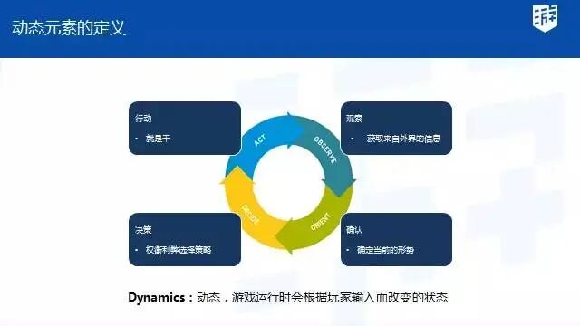 动态,游戏运行时会根据玩家输入而改变的状态。从观察信息、进行思考、做出抉择到最后能够有手段付诸行动的一个过程,我们称之为动态元素,简单的说,就是被希德梅尔称之为“选择”的过程。
