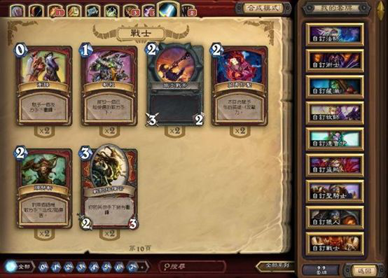 玩家先从9个职业中选择一个想要扮演的职业,然后从可用牌组中选择30张牌作为自己的手牌。职业并不是固定下来的,每局开始前玩家都可以选择不同的职业扮演。可用牌组也会不断更新,每年都有数百张新的卡牌被添加到卡牌池中,玩家主要通过购买卡包来抽卡的方式获得它们。除了所有职业都能用的基础牌,还有些卡牌是某种职业限定的,只有当玩家属于那种职业时,才能使用这类卡牌。